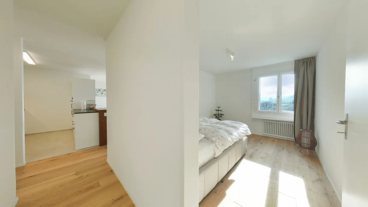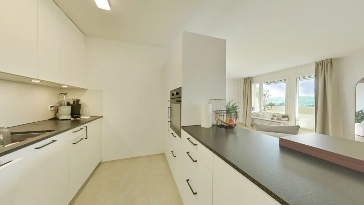 Die Wohnung wurde im Jahr 2025 umfassend renoviert. Dabei wurden sämtliche Räume, der neue Parkettboden, alle Türen sowie auch der Balkon vollständig erneuert. Die renovierte Küche fügt sich harmonisch in den offenen Wohn- und Essbereich ein und sorgt für ein zeitgemässes Wohnambiente. Auch die Dusche wurde renoviert und entspricht heutigen Wohnstandards.